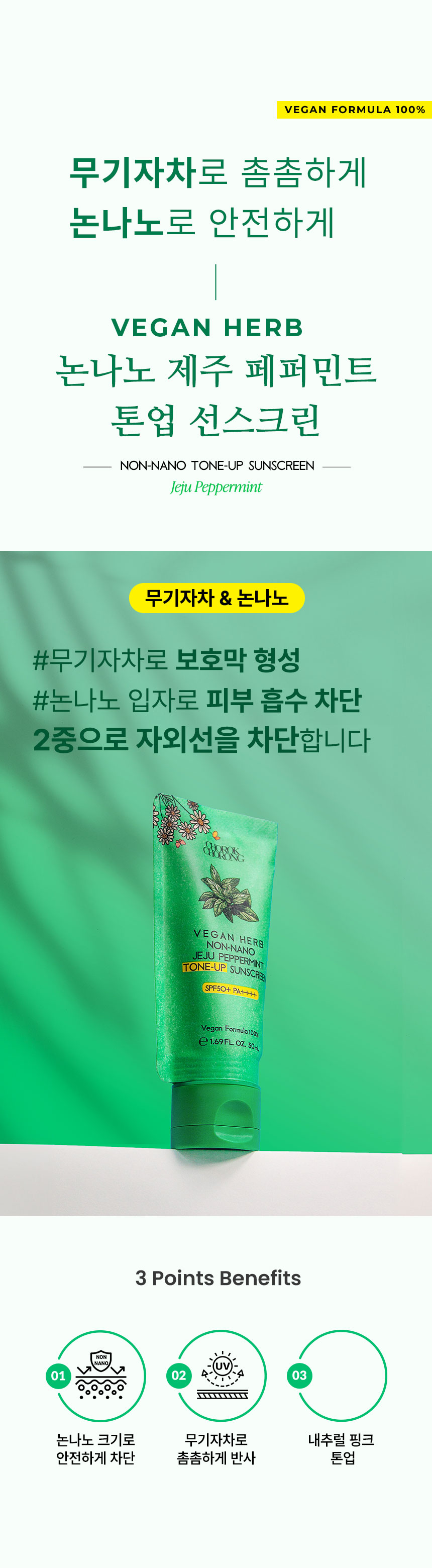 초록초롱 비건 허브 무기자차 논나노 제주 페퍼민트 톤업 선크림 50mL(SPF50+ PA++++)